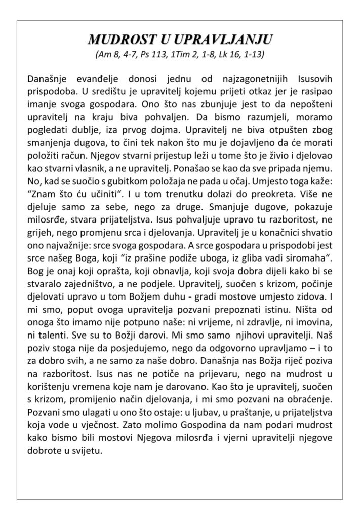 - 25. NEDJELJA KROZ GODINU 21. 9. 2025.