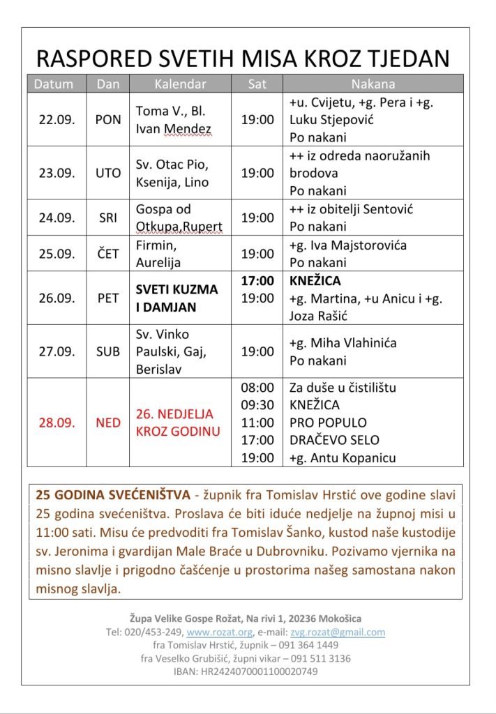 Župne obavijesti 2025. ROŽAT