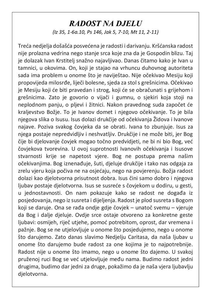 II. NEDJELJA DOŠAŠĆA 14. 12. 2025.