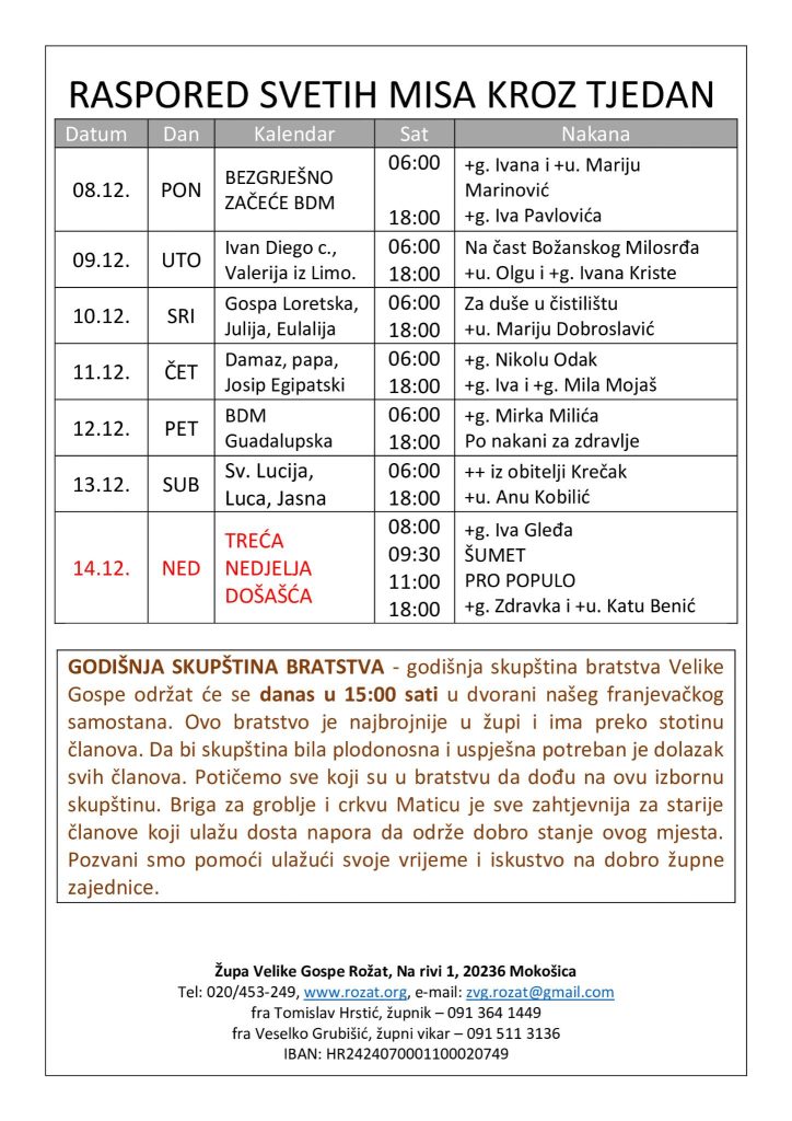 2.NEDJELJA DOŠAŠĆA 7. 12. 2025.